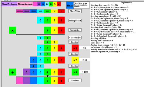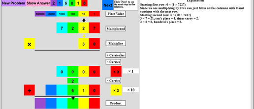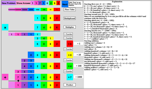 teach the method of base 10 multiplication for successively more complex